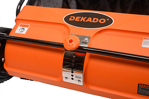 Собиратель листвы LS-1 DEKADO оснащен вместительным мусоросборником на 100 литров, который не требует частого опустошения во время работы. Рабочая ширина устройства составляет 66 сантиметров, а рабочая высота - от 40 до 130 миллиметров.