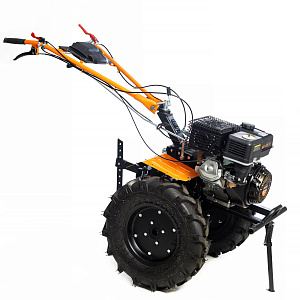 4-хтактный бензиновый двигатель и надежный редуктор в прочном чугунном корпусе. Редуктор имеет вал отбора мощности для подключения активного навесного оборудования. Руль имеет возможность регулировки по высоте для настройки его положения под рост оператора.