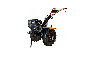На мотоблоке устанавливается современный 4-х тактный бензиновый двигатель и надежный редуктор в прочном чугунном корпусе. Редуктор имеет вал отбора мощности для подключения активного навесного оборудования, а также оснащен механизмами переключения передач и разблокировки обоих валов (дифференциал). Рулевая колонка имеет широкие диапазоны регулировки в двух плоскостях и дает возможность обрабатывать почву вдоль заборов и ограждений.