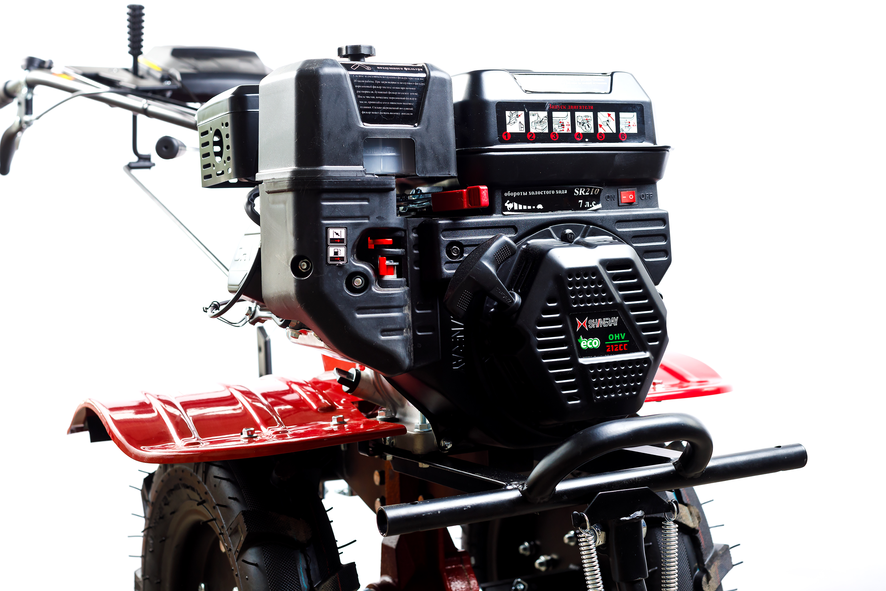Современный надежный бензиновый мотоблок SR1Z-100(3+1), предназначенный в основном для обработки (культивирования) почвы в садах и на приусадебных участках. При использовании дополнительного навесного оборудования (приобретается отдельно) может выполнять весь спектр агротехнических операций на любых типах почв: культивация, окучивание, нарезка борозд, вспашка плугом, выкапывание корнеплодов, кошение травы. Эргономичная конструкция позволяет легко обрабатывать почву даже на участках со сложным рельефом. На мотоблоке установлен мощный и экономичный 4-х тактный бензиновый двигатель и надежный редуктор в прочном чугунном корпусе. Редуктор имеет вал отбора мощности для подключения активного навесного оборудования. Руль имеет широкие диапазоны регулировки по двум осям и дает возможность настраивать его положение под рост оператора.
