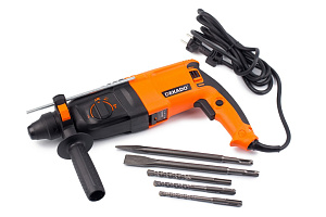 | Дополнительно | - 3 шт. сверл, зубило, копье, пластиковый кофр, металлический глубиномер Функции - перфоратор, дрель, перфоратор ударный |