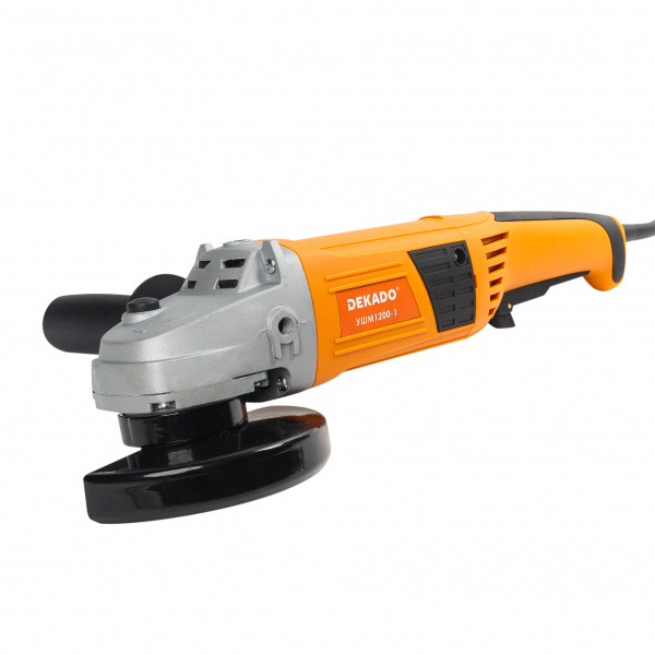 Угловая шлифовальная машина УШМ 1200-2 DEKADO предназначена для выполнения шлифовальных и отрезных работ по металлу и иным конструкционным и строительным материалам (кроме асбестосодержащих) без подачи воды. Для работы непрофессиональными пользователями в личных хозяйствах, бытовых и аналогичных условиях. В качестве рабочего инструмента используются шлифовальные, отрезные круги номинальным диаметром 150 мм, диаметром посадочного отверстия 22.2 мм и толщиной не менее 1 мм. Номинальная потребляемая мощность 1200 Вт.