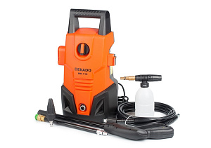 Легкая и удобная мойка высокого давления MD-110 DEKADO в базовой комплектации для использования в быту. Мойка высокого давления MD-110 DEKADO предназначена для непрофессиональной мойки автомобилей, мотоциклов, катеров, фургонов, брусчатки и садовой плитки, деревянных изделий, фасадов зданий из кирпичной кладки, сайдинга или панелей, а также садовых принадлежностей и т.п., с температурой воды не более +40°С. Мойка высокого давления MD-110 DEKADO предназначена только для бытового использования. Она не предназначена для непрерывной работы (например, использование на автомойках или на строительных работах для перекачки воды). Для профессионального или коммерческого применения используйте соответствующее оборудование. Комфортная в использовании мойка высокого давления MD-110 DEKADO станет для Вас отличным помощником в быту.
