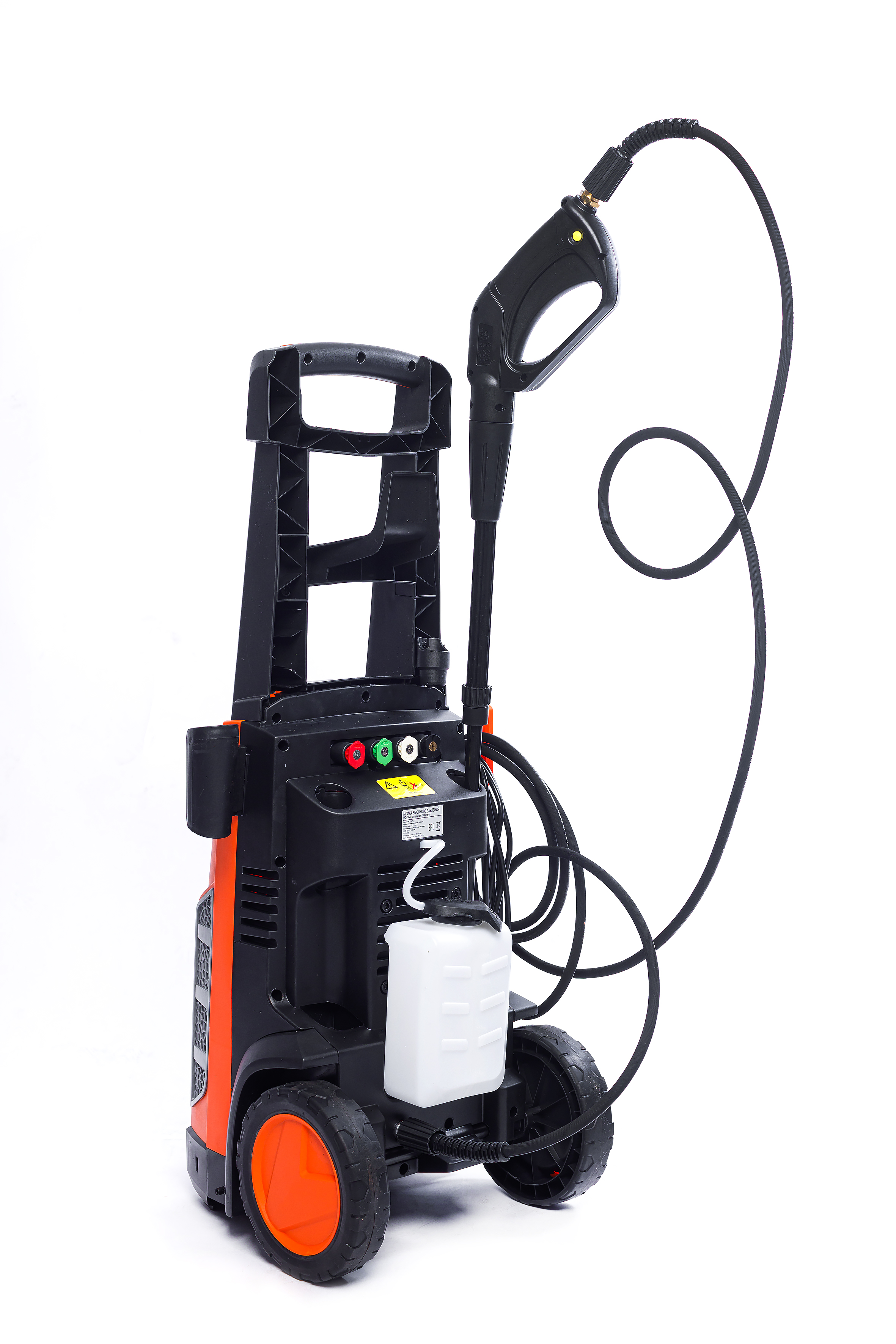 - Комплект быстросъемных насадок - форсунок, размещенный на задней стороне корпуса состоящий из 4-х быстросъемных насадок и грязевая фреза: Красная форсунка - угол распыления 0° Черная форсунка - угол распыления 60° Зеленая форсунка - угол распыления 25° Белая форсунка - угол распыления 40° Грязевая фреза - создает вращающуюся конусную струю. Алюминиевая телескопическая ручка легко убирается внутрь корпуса агрегата, для его перемещения и хранения с экономией места.