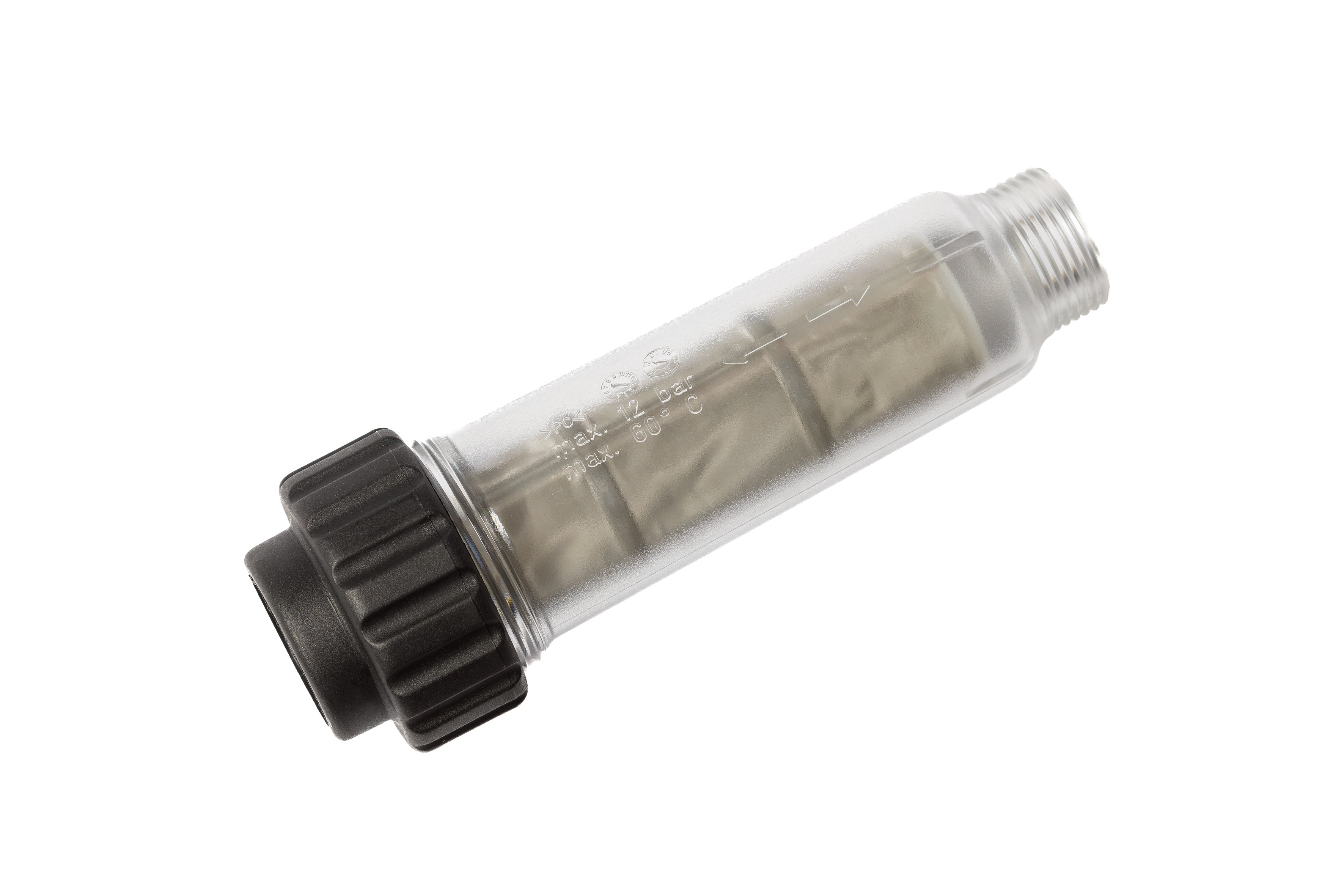 Фильтр водяной – тонкой очистки подходит для большинства моделей моек высокого давления и устанавливается на подаче воды к мойке высокого давления. Установка фильтра тонкой очистки обязательна, для обеспечения более длительного срока эксплуатации Вашего аппарата высокого давления. Фильтр тонкой очистки и рассчитан на неоднократное использование. Фильтр имеет вход - внешнюю резьбу ¾ дюйма и выход с внутренней резьбой ¾ дюйма.
