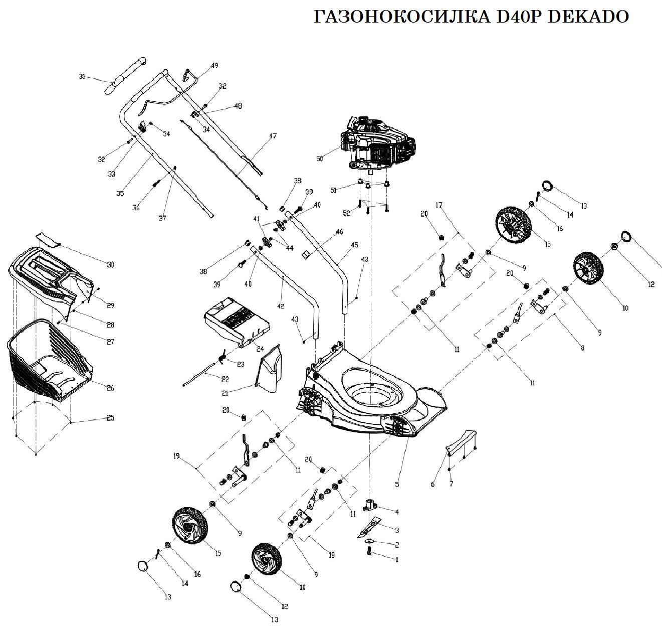 Газонокосилка D40P выступает в «легком весе», всего лишь 19.5 кг в линейке бензиновых газонокосилок DEKADO. Газонокосилка D40P ручного типа передвижения, с мощностью бензинового двигателя 3.0 л. с. Подходит для кошения травы в садах, огородах и на небольших приусадебных участках, с ровной поверхностью. Позволяет обрабатывать газонную полосу шириной 40 см. Корпус деки выполнен из ударопрочного пластика. Компактна, проста в управлении и маневренна, оснащена складной рукояткой. На корпусе агрегата имеется 6 ступеней регулировки высоты кошения. Газонокосилка D40P предназначена для индивидуального бытового применения.