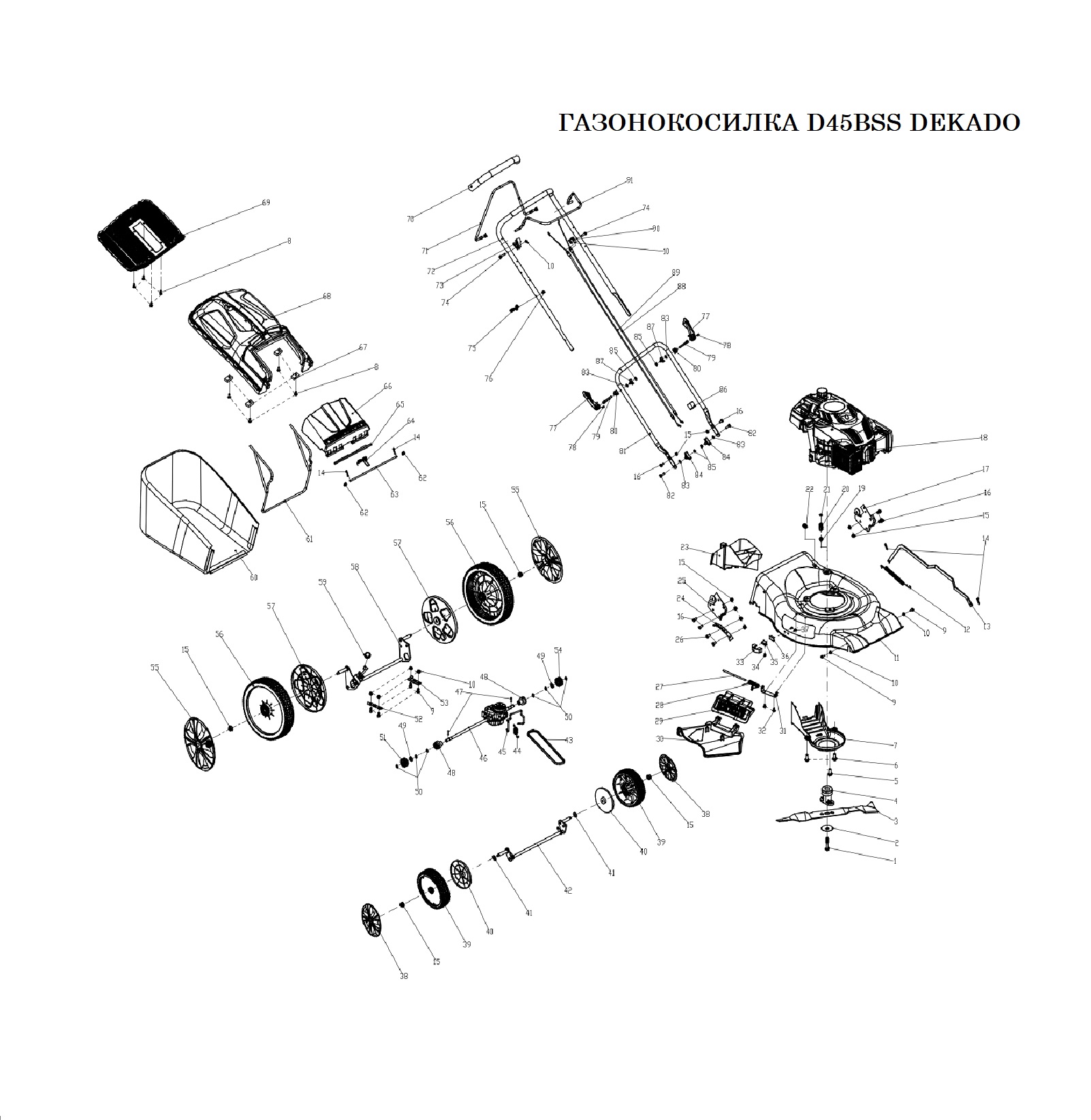 Еще одна из сегмента бензомоторных газонокосилок D45BSS. Самоходная газонокосилка, оснащенная двигателем Briggs&Stratton, мощностью 3.5 л. с., с приводом на задние колеса, который обеспечивает более высокую производительность и возможность работы на сложном рельефе. Подходит для кошения травы в садах, огородах, приусадебных участках. Позволяет обрабатывать газонную полосу шириной 46 см. Корпус деки выполнен из стали, что делает агрегат устойчивым к коррозии. Высота скашивания травы изменяется централизованно, в диапазоне от 25 до 75 мм и имеет в наличии боковой выброс травы и функцию мульчирования. Газонокосилка D45BSS предназначена для индивидуального бытового применения.