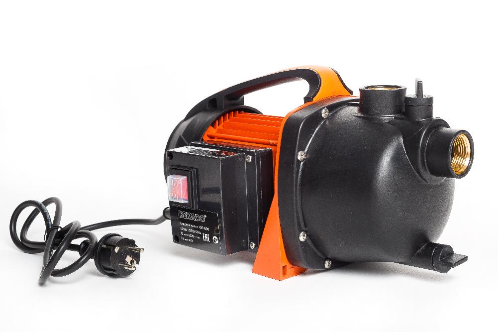 Инструкция по эксплуатацииПоверхностный (садовый) насос GP-800 DEKADO при эксплуатации не погружается в перекачиваемую жидкую среду – его располагают на поверхности земли, в непосредственной близости от источника водоснабжения. Чаще всего насосные устройства данного типа используют для работ с дождевой, пресной водопроводной, а также содержащей хлор водой из бассейна, откачивания воды из колодезных источников, так как глубина, с которой они могут эффективно откачивать жидкую среду, составляет не более 7 метров. Насос садовый GP-800 DEKADO предназначен для осушения затопленных мест, перекачки, забора воды из колодцев и скважин, повышения давления в системах водоснабжения. Поверхностным насосом GP-800 DEKADO можно перекачивать только воду не имеющую механических примесей. Насос предназначен только для бытового использования.