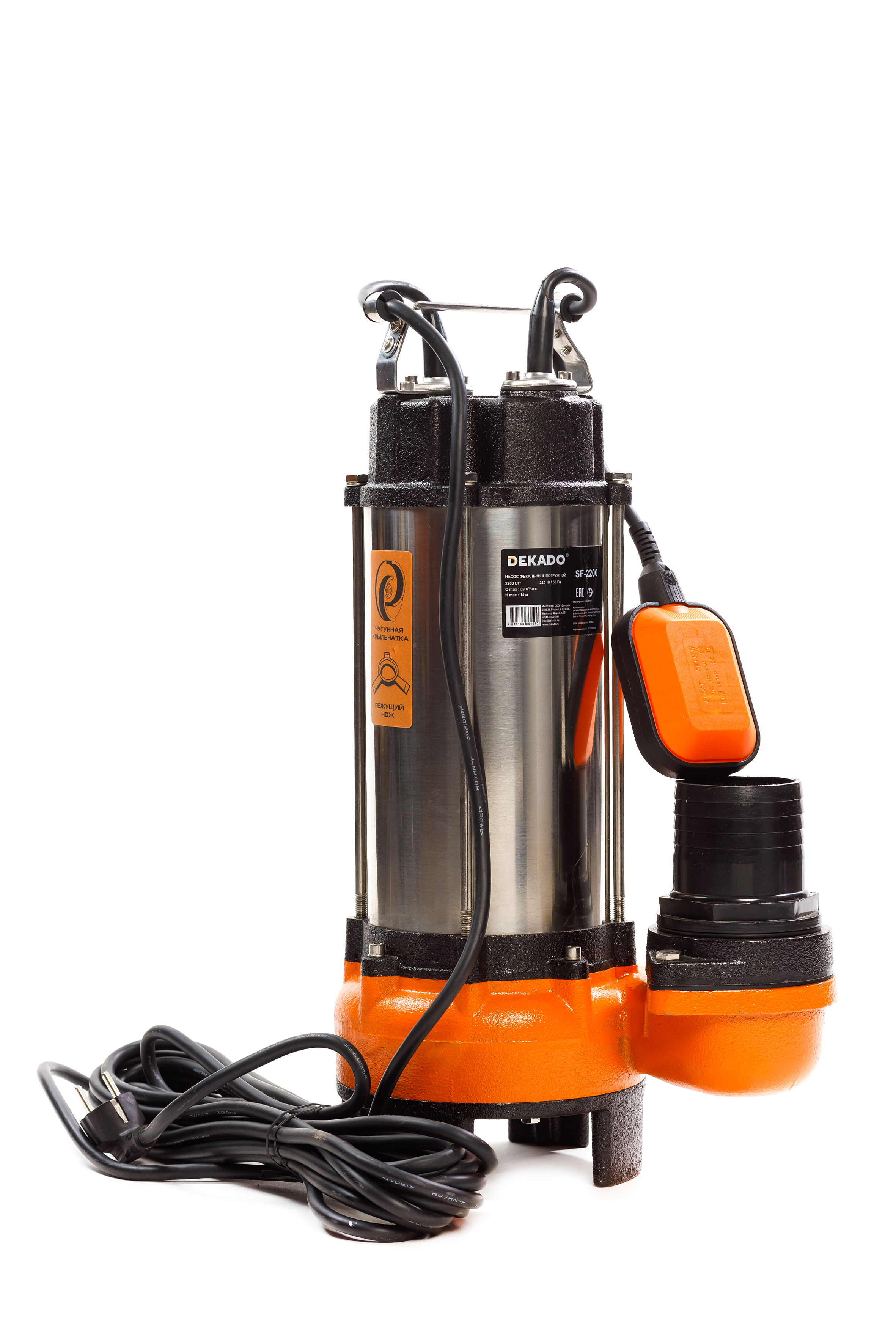 Погружной вертикальный фекальный насос SF-2200 DEKADO предназначен для широкого спектра использования, как дренажный насос, либо как фекальный. Данный тип насоса имеет чугунный корпус улитки, чугунную крыльчатку и нож. Вы можете использовать его для отведения дренажных, дождевых, грунтовых, талых и сточных вод из дренажных, коллекторных и фильтрационных колодцев, садовых прудов, сточных канав, бассейнов, затопленных подвалов и шахт, как в ручном, так и в автоматическом режиме. Кроме того, насос может применяться для орошения огородов и садов, подачи воды из колодцев, открытых водоемов и других источников. Насос предназначен только для бытового использования.