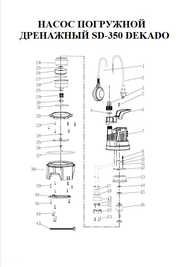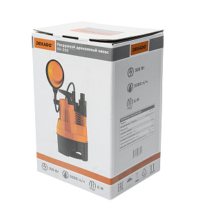 Насос погружной дренажный SD-350 DEKADO предназначены для отведения дренажных, дождевых, грунтовых, талых и сточных вод из дренажных, коллекторных и фильтрационных колодцев, садовых прудов, сточных канав, бассейнов, затопленных подвалов и шахт, как в ручном, так и в автоматическом режиме. Кроме того, насос может применяться для орошения садов и огородов, подачи воды из колодцев, открытых водоемов и источников. SD-350 DEKADO имеет металлический вал электродвигателя с алюминиевой обмоткой заключенный в корпус из пластика. Насос предназначен только для бытового использования.