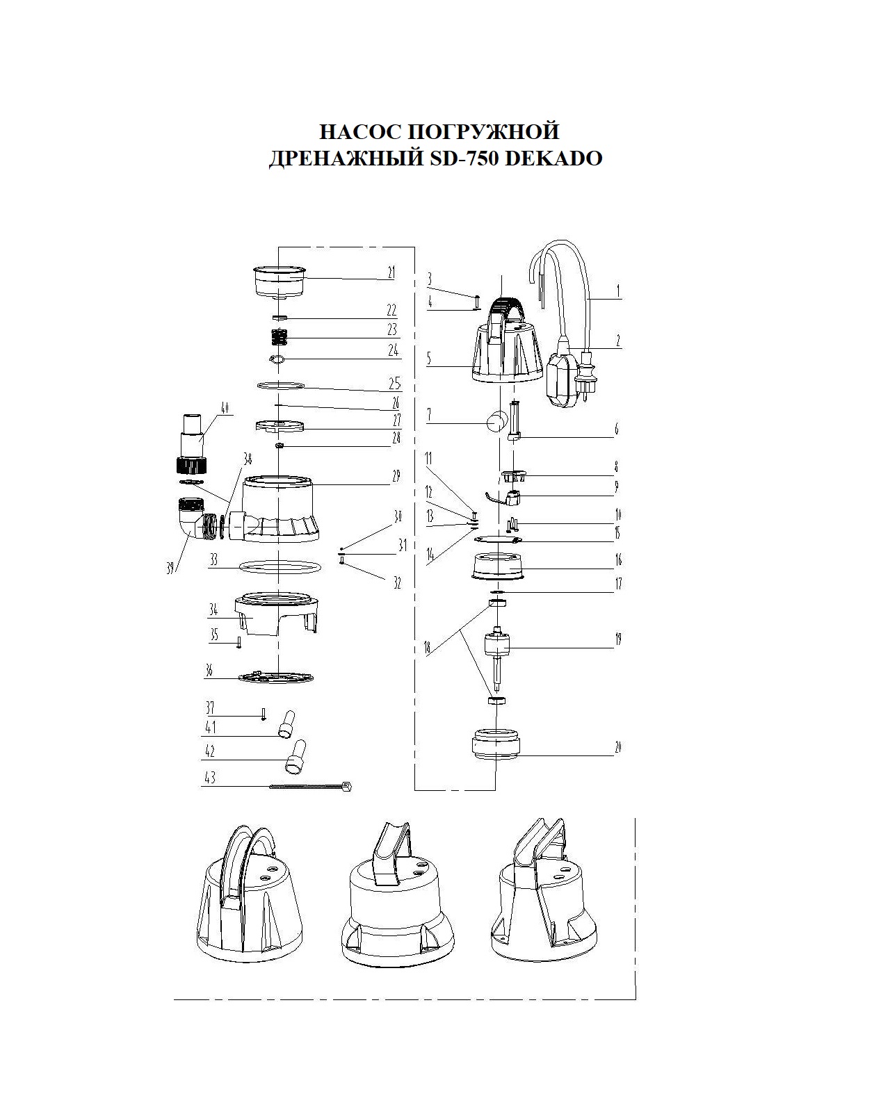 Насос погружной дренажный SD-750 DEKADO предназначены для отведения дренажных, дождевых, грунтовых, талых и сточных вод из дренажных, коллекторных и фильтрационных колодцев, садовых прудов, сточных канав, бассейнов, затопленных подвалов и шахт, как в ручном, так и в автоматическом режиме. Кроме того, насос может применяться для орошения садов и огородов, подачи воды из колодцев, открытых водоемов и источников. SD-750 DEKADO имеет металлический вал электродвигателя с алюминиевой обмоткой заключенный в корпус из пластика. Насос предназначен только для бытового использования.