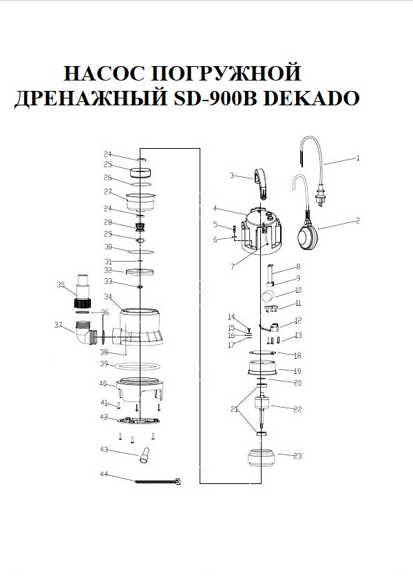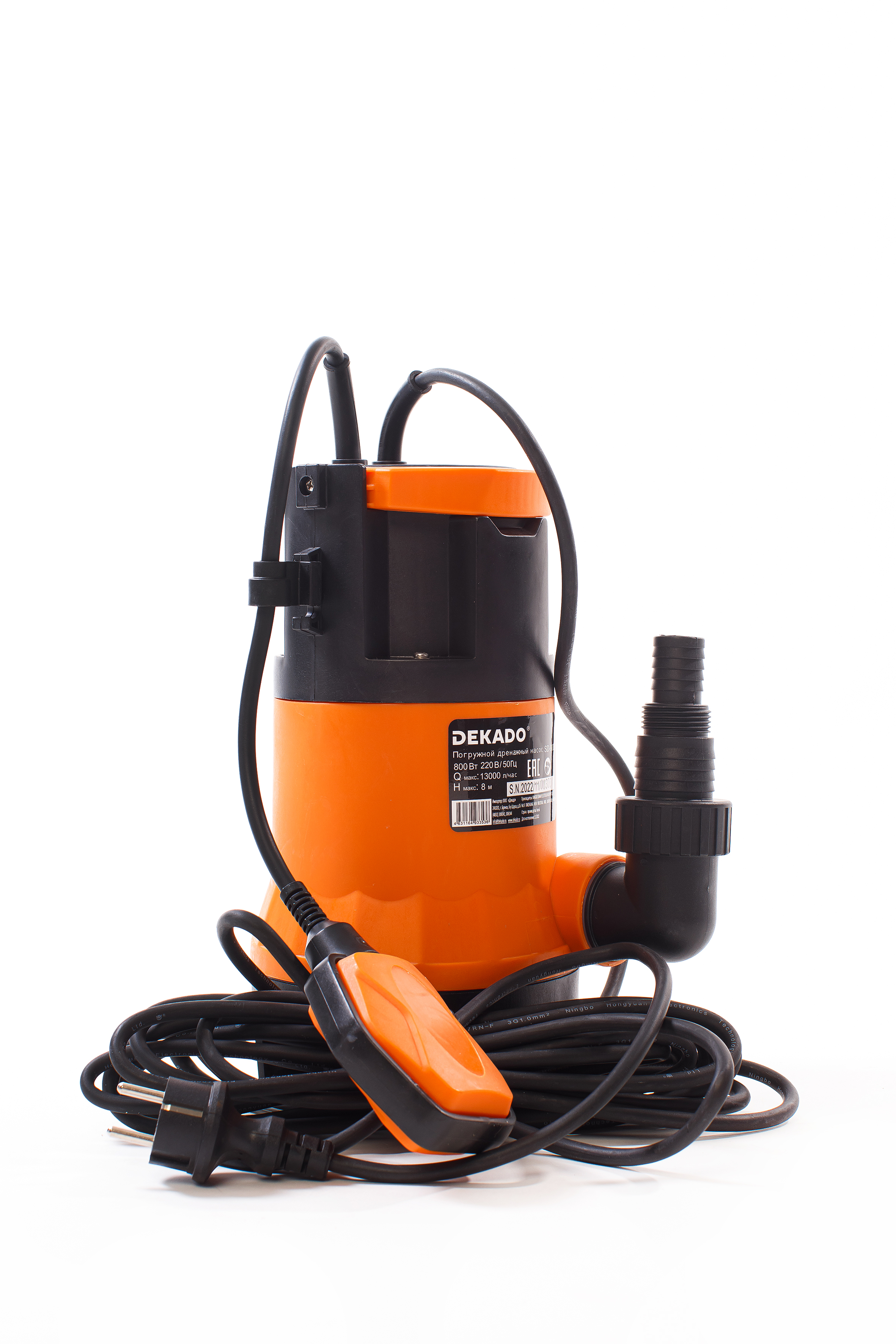 Насос погружной дренажный SD-900B DEKADO предназначены для отведения дренажных, дождевых, грунтовых, талых и сточных вод из дренажных, коллекторных и фильтрационных колодцев, садовых прудов, сточных канав, бассейнов, затопленных подвалов и шахт, как в ручном, так и в автоматическом режиме. Кроме того, насос может применяться для орошения садов и огородов, подачи воды из колодцев, открытых водоемов и источников. SD-900B DEKADO имеет металлический вал электродвигателя с алюминиевой обмоткой заключенный в корпус из пластика. Насос предназначен только для бытового использования.