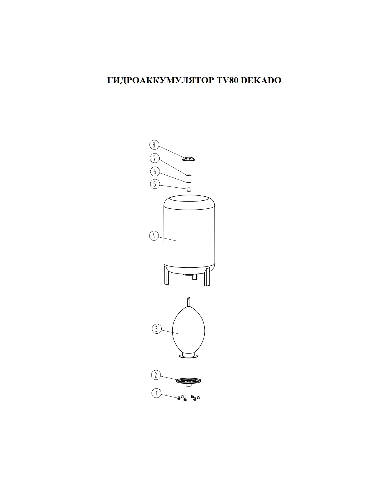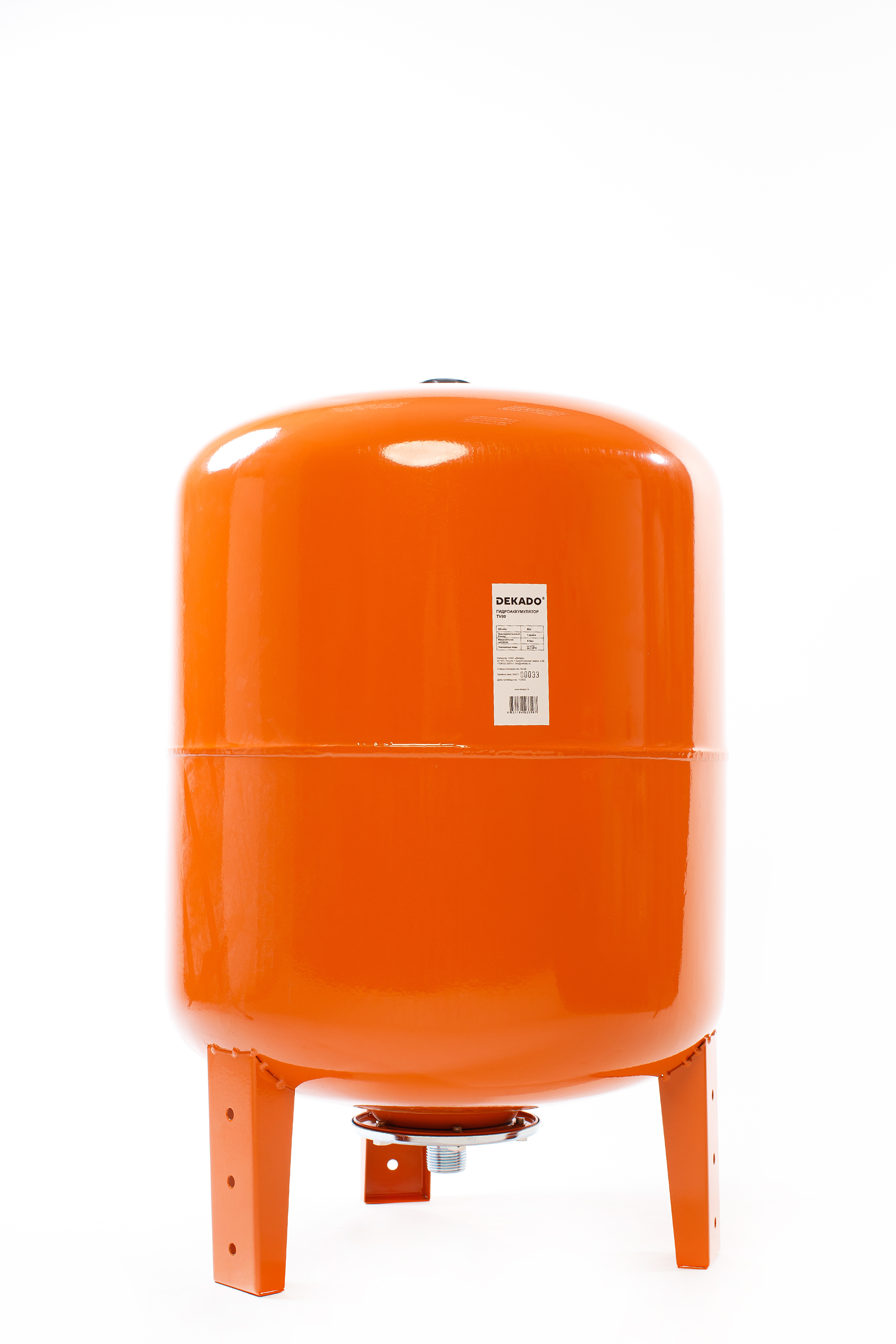 Гидроаккумулятор TV80 DEKADO предназначен для аккумулирования запаса воды под давлением, а также снижения вероятности появления гидроудара в системе. Используется в системе водоснабжения совместно с поверхностным или скважинным бытовым насосом, обеспечивая комфортное водопользование, в период между включениями насоса и увеличением временных интервалов между пусками. Гидроаккумулятор TV80 DEKADO предназначен только для бытового использования.