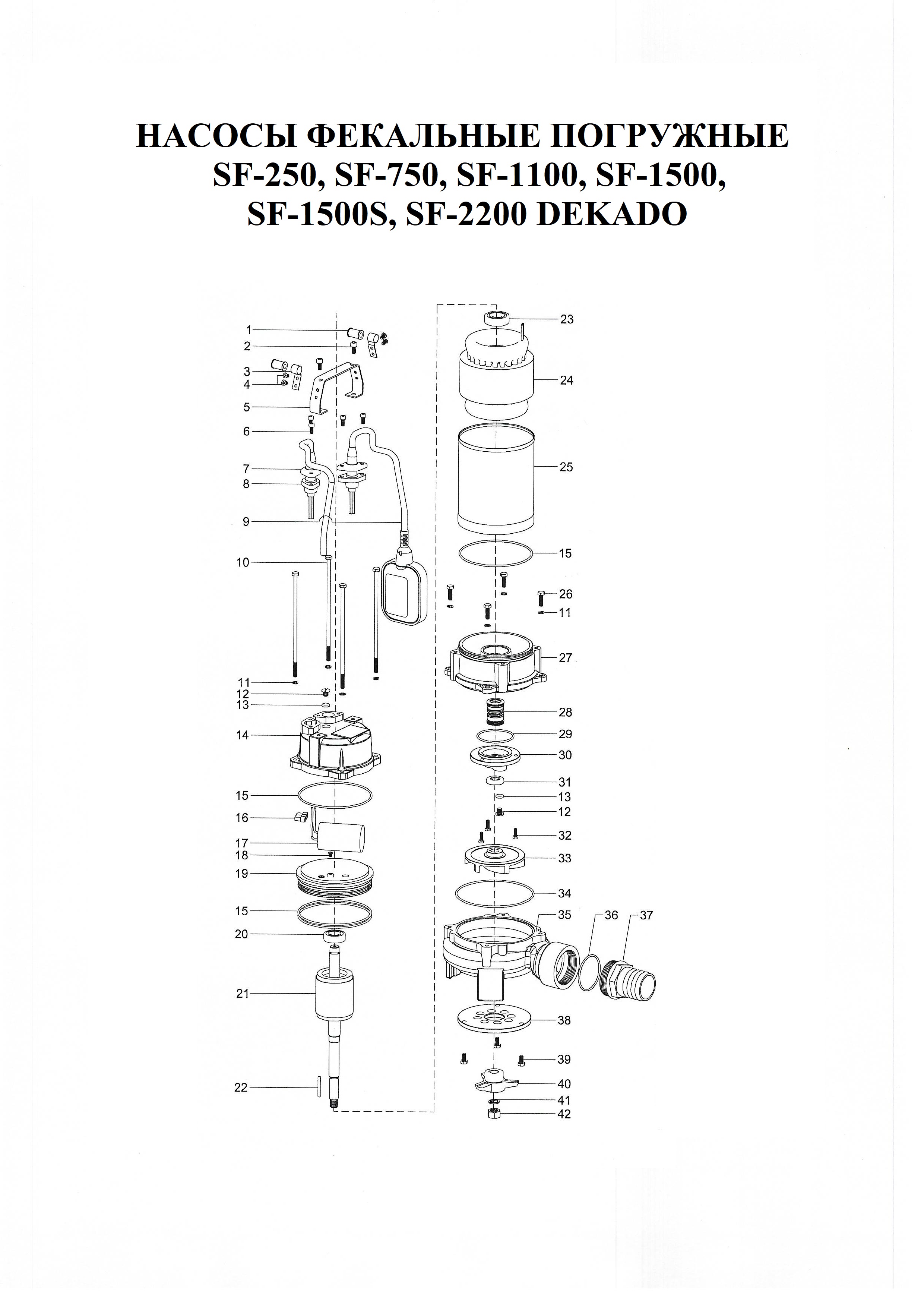 Погружной вертикальный фекальный насос SF-1500S DEKADO предназначен для широкого спектра использования, как дренажный насос, либо как фекальный. Данный тип насоса имеет чугунный корпус улитки, чугунную крыльчатку и режущую систему ножей Гриндер GR-SC. Вы можете использовать насос SF-1500S для отведения дренажных, дождевых, грунтовых, талых и сточных вод из дренажных, коллекторных и фильтрационных колодцев, садовых прудов, сточных канав, бассейнов, затопленных подвалов и шахт, как в ручном, так и в автоматическом режиме. Кроме того, насос может применяться для орошения огородов и садов, подачи воды из колодцев, открытых водоемов и других источников. Насос предназначен только для бытового использования.