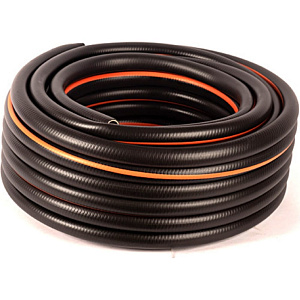 Шланг предназначен для полива, а также для перекачки и прочих работ с жидкостями, в том числе с пищевыми. Трехслойный, армированный высокопрочной синтетической нитью шланг. Внутренний слой ПВХ непрозрачный, защищает от проникновения солнечных лучей и препятствует образованию водорослей внутри тела шланга. Наружный слой ПВХ слой непрозрачный, окрашенный в черный цвет, имеет продольную цветную полосу, а также специальные защитные добавки от воздействия внешних факторов, таких как ультрафиолетовое излучение, истирание. Между внутренним и наружным ПВХ слоями проложен высокопрочный плетеный корд из высокопрочной синтетической нити. Благодаря повышенным качественным показателям этот вид шланга имеет более высокие эксплуатационные характеристики - не заламывается и не перегибается. Температурный режим эксплуатации -5°С до +40°С. Не содержит вредных веществ (Cd, Ba, Pb).