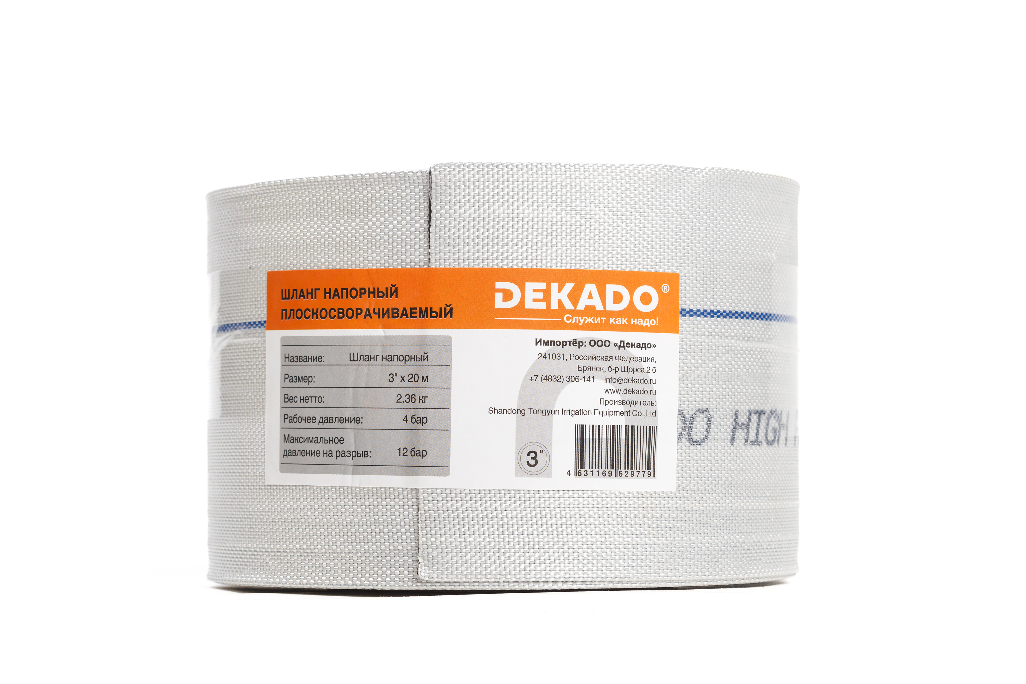 Напорный плоскосворачиваемый шланг DEKADO Ø3'' - расходный материал для садовой техники, который предназначен для откачки сточных и дренажных вод, направленной подачи воды, орошения участков. Представляет собой трубку из высококачественного полиэтилена, укрепленную плетеным нитяным каркасом из полиэстера. Отличается от других гибких водонапорных шлангов способом хранения и транспортировки. В нерабочем состоянии изделие становится плоским, позволяя свернуть его в рулон сравнительно небольшого диаметра.