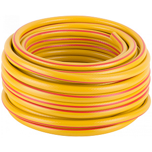 Трехслойный, армированный высокопрочной синтетической нитью шланг для полива, перекачки и прочих работ с жидкостями, в том числе с пищевыми. Внутренний слой ПВХ непрозрачный, черный, защищает от проникновения солнечных лучей и препятствует образованию водорослей внутри тела шланга. Наружный ПВХ слой непрозрачный, окрашенный, имеет продольную цветную полосу, а также специальные защитные добавки от воздействия внешних факторов, таких как ультрафиолетовое излучение, истирание. Между внутренним и наружным ПВХ слоями проложен высокопрочный плетеный корд из высокопрочной синтетической нити. Благодаря повышенным качественным показателям этот вид шланга имеет более высокие эксплуатационные характеристики (не заламывается и не перегибается). Не содержит вредных веществ (Cd, Ba, Pb). Выдерживает давление до 20 бар. Рабочая температура от -5°С до +40°С. Благодаря высоким качественным показателям этот вид шланга имеет высокие эксплуатационные характеристики!