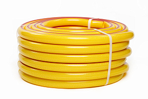 Трехслойный, армированный высокопрочной синтетической нитью чулочного плетения, шланг для полива, перекачки и прочих работ с жидкостями. Внутренний слой ПВХ непрозрачный, защищает от проникновения солнечных лучей и препятствует образованию водорослей внутри тела шланга. Наружный ПВХ слой непрозрачный, окрашенный, имеет продольную цветную полосу, а также специальные защитные добавки от воздействия внешних факторов, таких как ультрафиолетовое излучение, истирание. Благодаря повышенным качественным показателям этот вид шланга имеет более высокие эксплуатационные характеристики (не заламывается и не перегибается). Не содержит вредных веществ (Cd, Ba, Pb). Выдерживает давление до 18 бар. Рабочая температура от -10°С до +40°С. Благодаря высоким качественным показателям этот вид шланга имеет высокие эксплуатационные характеристики!