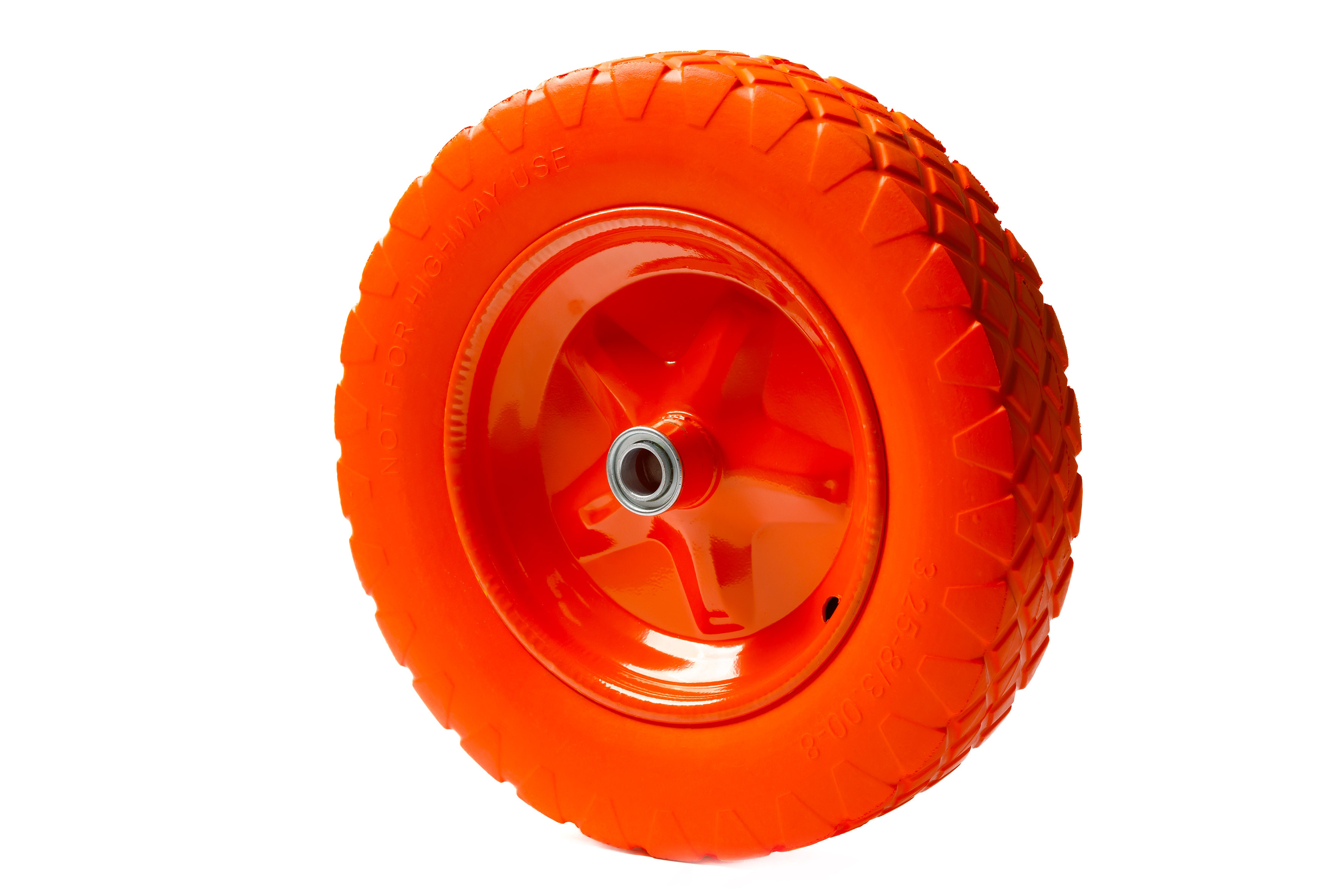 Колесо 3.25-8 изготовлено из полиуретана. Данный вид колес позволяет легко эксплуатировать их по неровным дорогам, вскопанной почве. Такие колеса не требуют расходов на ежедневную подкачку и обслуживание, таким образом обеспечивают непрерывность рабочего процесса. Чаще всего такой тип колес используют на строительных тачках, на участках, где возможны проколы колеса, и нужна упругость наравне с мягкостью хода. Полиуретановые колеса выдержат прокол гвоздя, с ними ничего не случится, и они не потеряют своих свойств. Оснащаются радиальными шариковым подшипником для легкого хода.