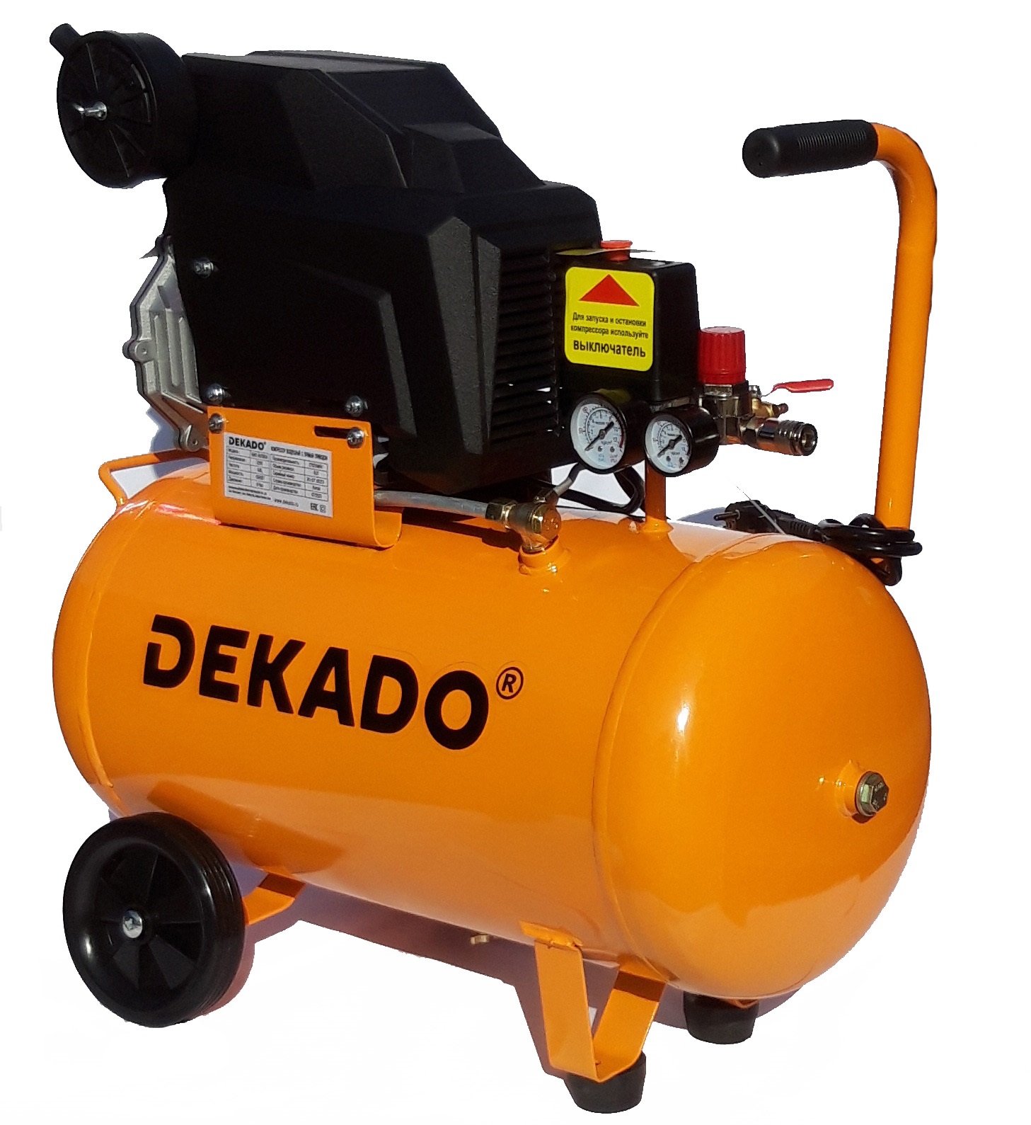 Компрессор воздушный поршневой масляный прямого привода KM2-50/300A DEKADO, предназначен для выработки сжатого воздуха. Используется совместно с пистолетами для продувки, краскораспылителями, пневмовинтовертами, отбойными молотками, кузовными пилами, пистолетами для подкачки шин и другими инструментами пневматического типа. Ресивер объемом 50 литров позволяет накапливать сжатый воздух, что ведет к сокращению рабочих циклов и замедляет изнашивание. Тем самым обеспечивает возможность продолжительной работы с высокой эффективностью. Компрессор КМ2-50/300A DEKADO имеет производительность 270 л. / мин, с максимальным рабочим давлением 8 бар. Обмотка двигателя данного компрессора – алюминиевая.