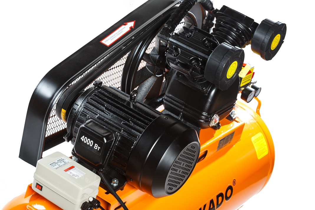 Компрессор воздушный поршневой масляный с ременным приводом KР-150/600Т DEKADO, предназначен для выработки сжатого воздуха. Используется совместно с пистолетами для продувки, краскораспылителями, пневмовинтовертами, отбойными молотками, кузовными пилами, пистолетами для подкачки шин и другими инструментами пневматического типа. Ресивер объемом 150 литров позволяет накапливать сжатый воздух, что ведет к сокращению рабочих циклов и замедляет изнашивание. Тем самым обеспечивает возможность продолжительной работы с высокой эффективностью. Ременная система компрессора закрыта специальным решетчатым кожухом. Все элементы контроля (манометры) и управления расположены в одном месте для удобства эксплуатации компрессора. Компрессор КР-150/600Т DEKADO имеет производительность 600 л. / мин, с максимальным рабочим давлением 8 бар. Обмотка двигателя данного компрессора – медная. Оснащен блоком управления электродвигателем.