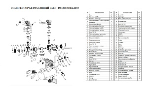 Компрессор воздушный поршневой с прямым приводом без масляного картера КМ 2-1450х2F50 бытового применения.