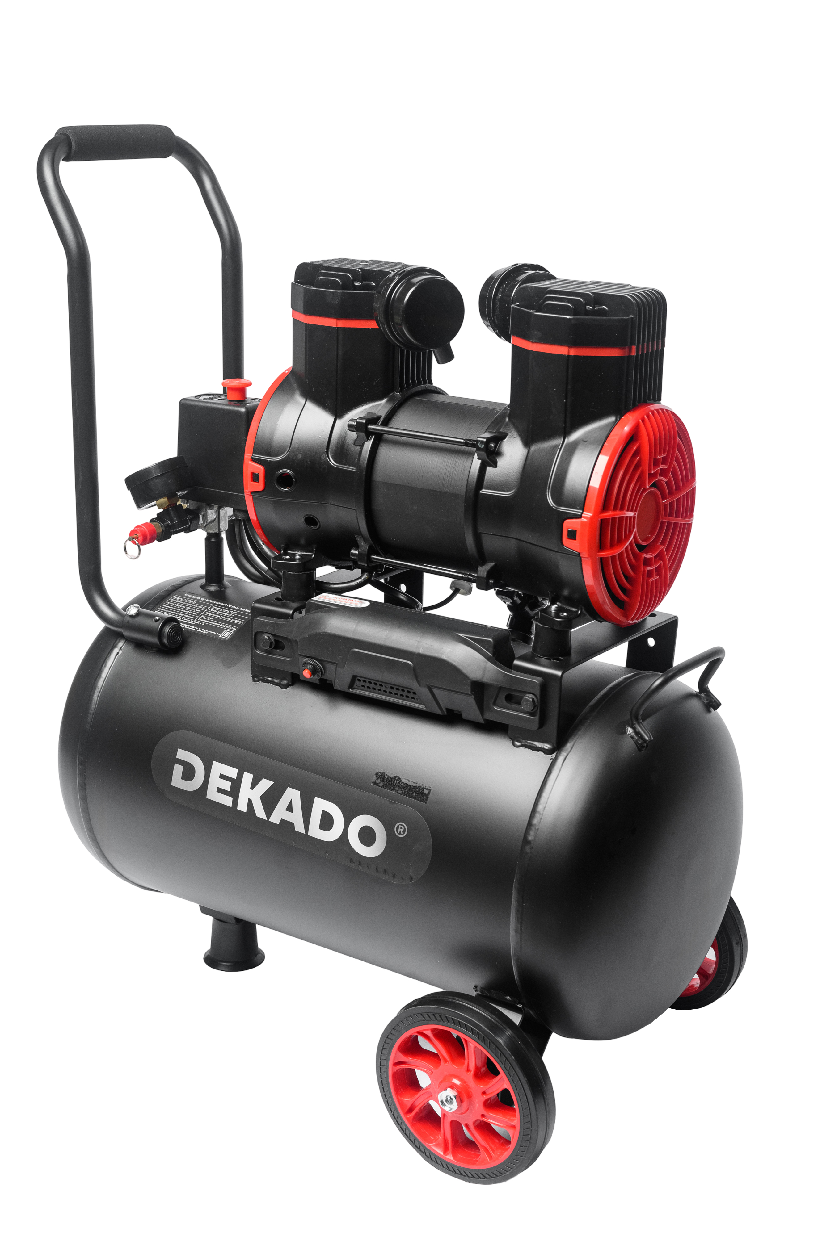 Компрессор воздушный поршневой с прямым приводом без масляного картера КМ 2-1780F35 DEKADO бытового применения. Предназначен для получения сжатого воздуха и снабжения им различных пневмопотребителей. Двухцилиндровый безмасляный компрессор КМ 2-1780F35 DEKADO с рабочим давлением 8 бар позволит эффективно применять пневматические гайковерты, степлеры, гвоздезабиватели, а также оборудование для опрессовки и очистки поверхностей. Так же подойдет безмасляный компрессор для краскопульта и аэрографа. Компрессор КМ 2-1780F35 DEKADO оснащен однофазным асинхронным электрическим двигателем, который обеспечивает производительность на входе до 140 л/мин. Горизонтальный ресивер объемом 35 литров позволяет накапливать сжатый воздух и обеспечивает стабильную работу компрессора. Компрессор оборудован двумя колесами для удобства, что облегчает перемещение по рабочей площадке.