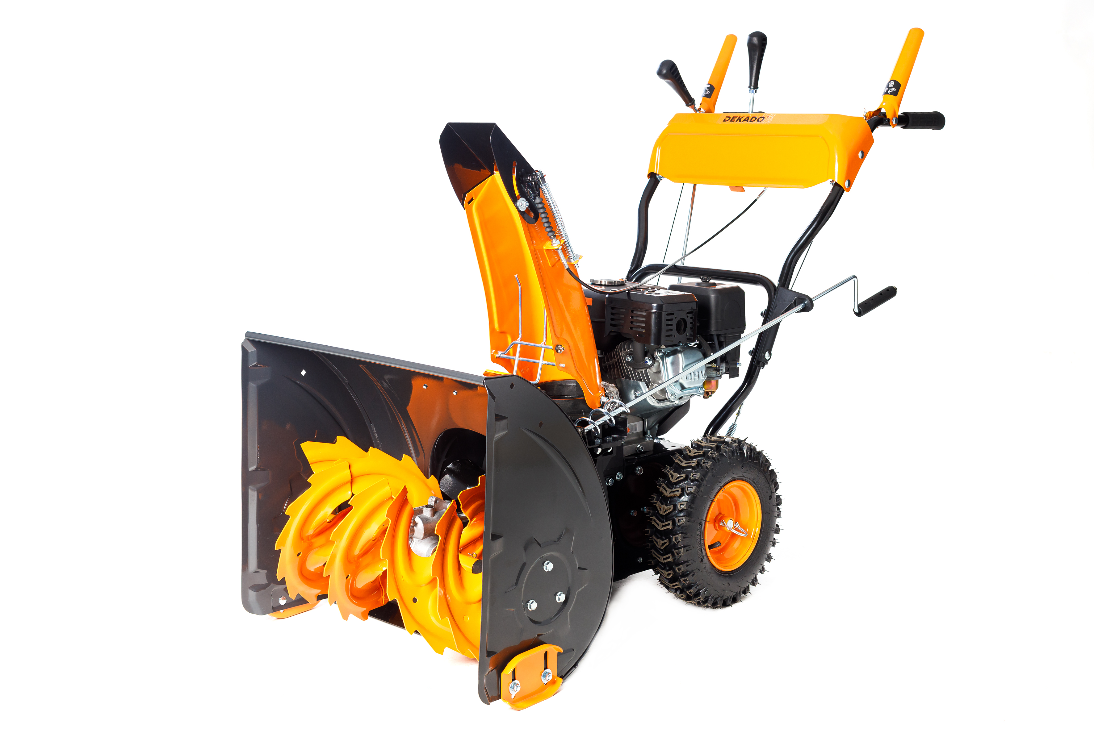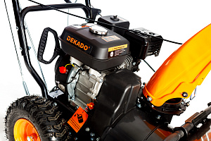 Снегоуборщик ST610 DEKADO предназначен для уборки снега с дорог, тротуаров, а также на территории загородного дома и дачи. Протектор шин снегоуборщика ST610 DEKADO способствует эффективному сцеплению с поверхностью даже при работе на обледенелых участках. Снегоуборщик оснащен двухступенчатым металлическим шнеком, который справляется с плотным снегом. Вращающиеся детали изготовлены из прочного металла - стали, устойчивого к механическому воздействию. Это обеспечивает качественный результат при работе и продлевает срок службы снегоуборщика. Направление отбрасывания снега регулируется в соответствии с индивидуальными потребностями с помощью рычага.