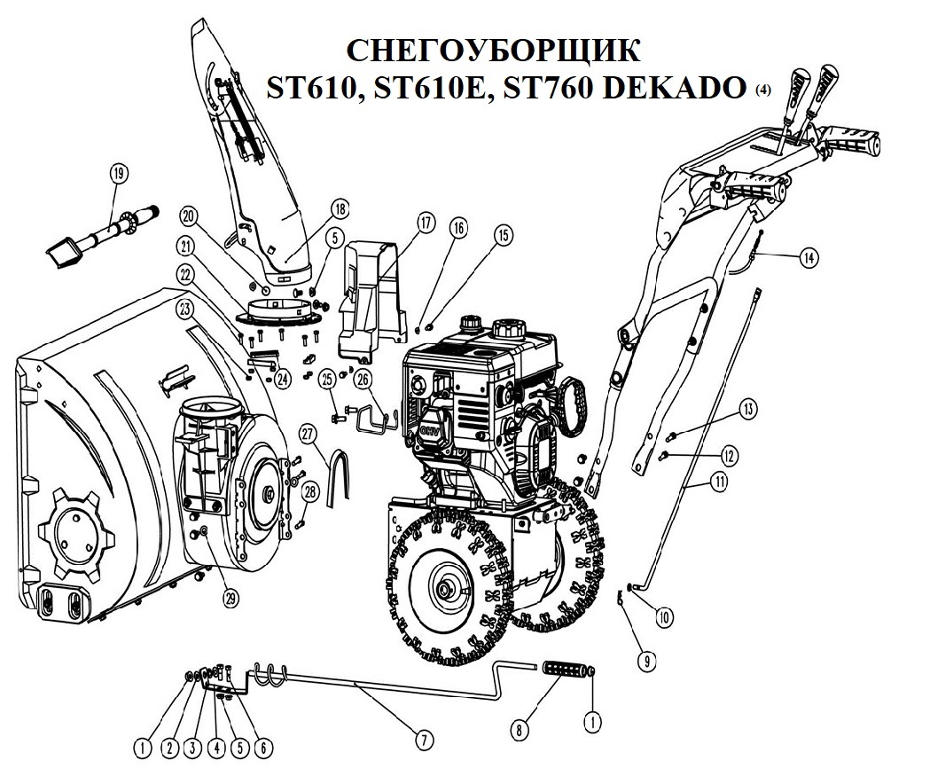 Снегоуборщик ST610E DEKADO предназначен для уборки снега с дорог, тротуаров, а также на территории загородного дома и дачи. Протектор шин снегоуборщика ST610E DEKADO способствует эффективному сцеплению с поверхностью даже при работе на обледенелых участках. Снегоуборщик оснащен двухступенчатым металлическим шнеком, который справляется с плотным снегом. Вращающиеся детали изготовлены из прочного металла - стали, устойчивого к механическому воздействию. Это обеспечивает качественный результат при работе и продлевает срок службы снегоуборщика. Направление отбрасывания снега регулируется в соответствии с индивидуальными потребностями с помощью рычага. На снегоуборщике установлена фара.